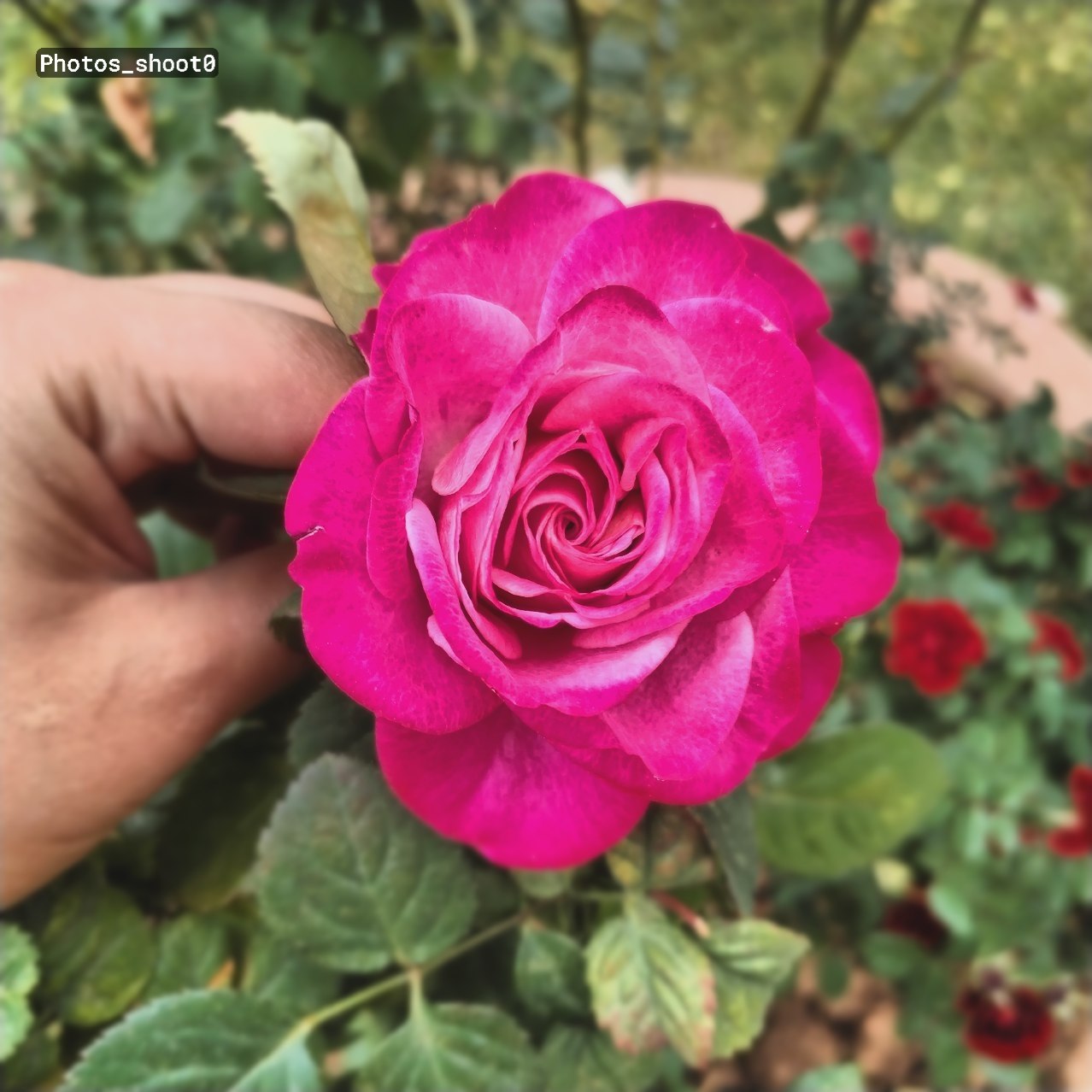a hand holding a pink rose
