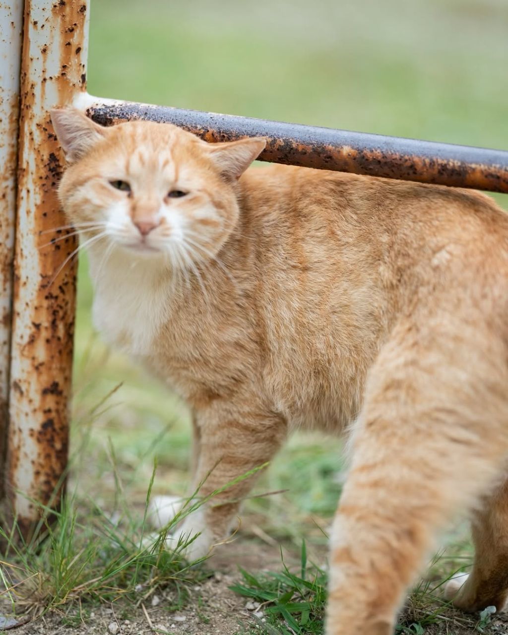 a cat standing on grass