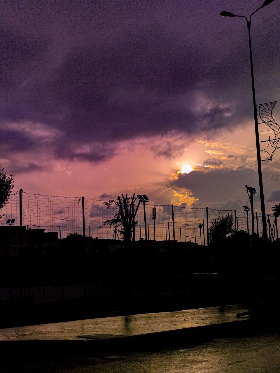a sunset over a bridge