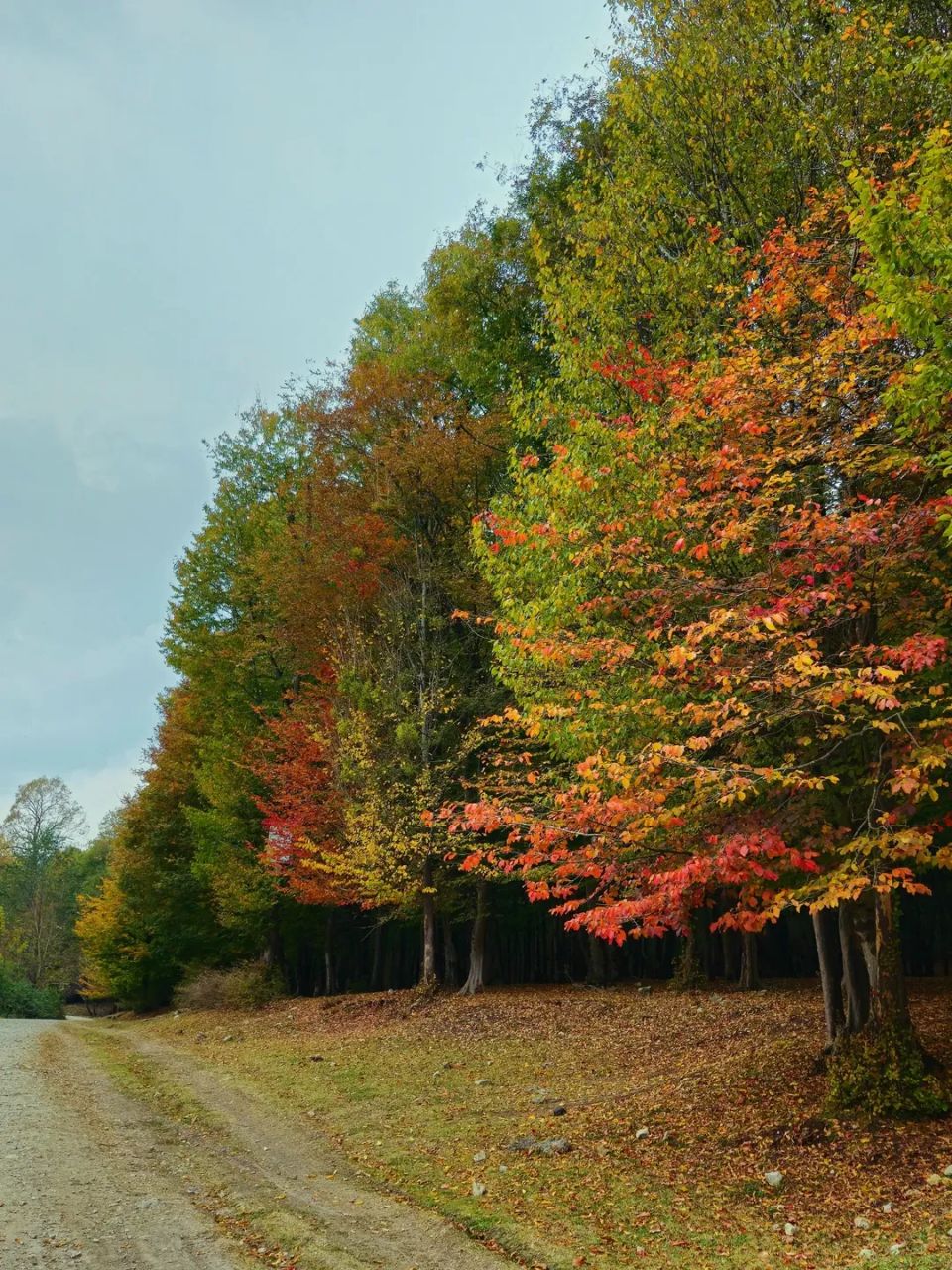 a dirt road with trees on either side of it