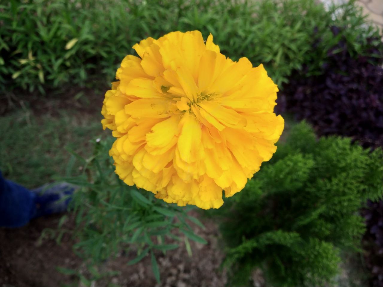 a yellow flower in a garden