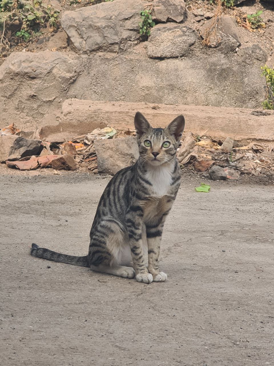 a cat sitting on the ground