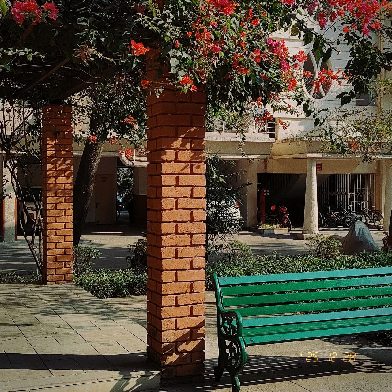 a bench sits unoccupied