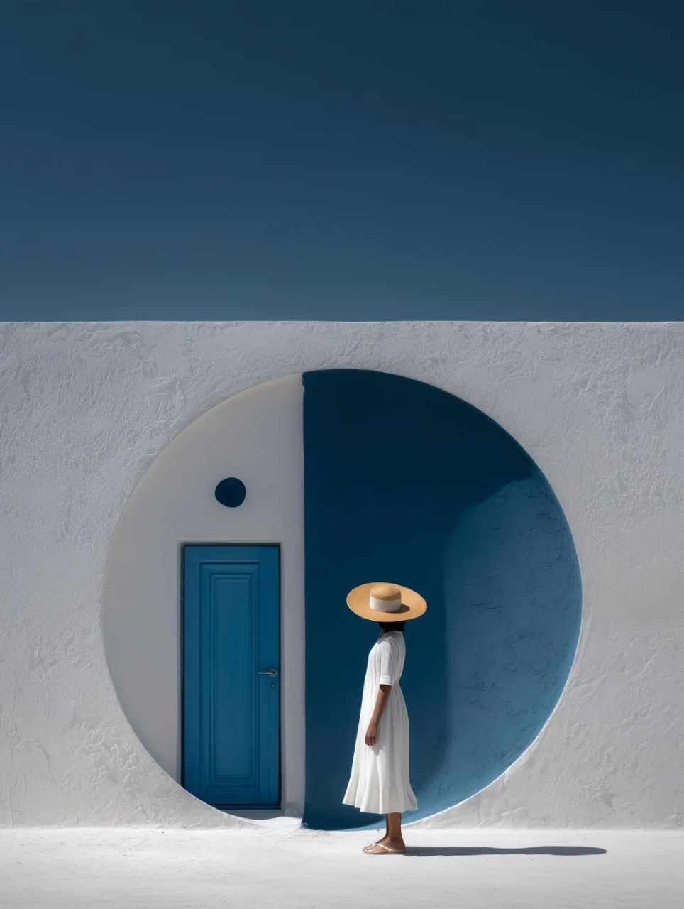a man and a woman standing in front of a blue wall 2 years ago 49