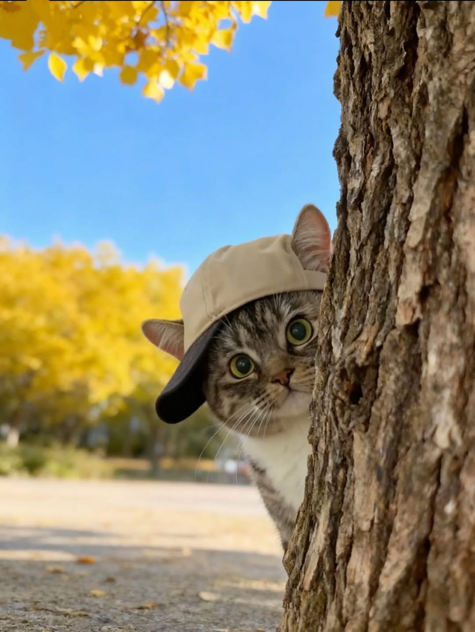 a person wearing a red head scarf and a red head scarf standing under a tree with white flowers