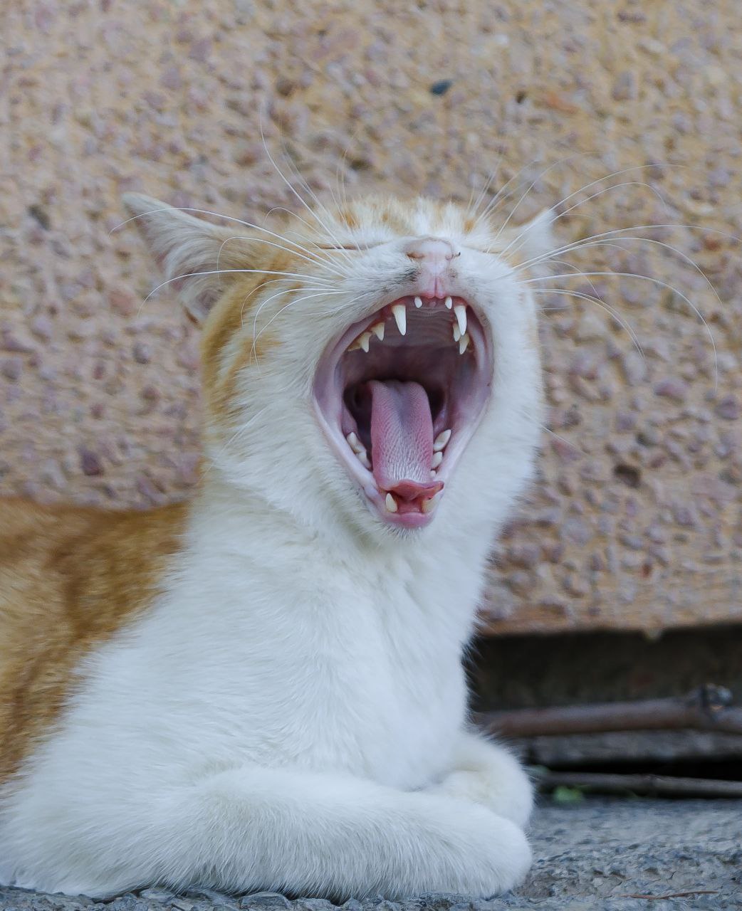 a cat yawning with its mouth open