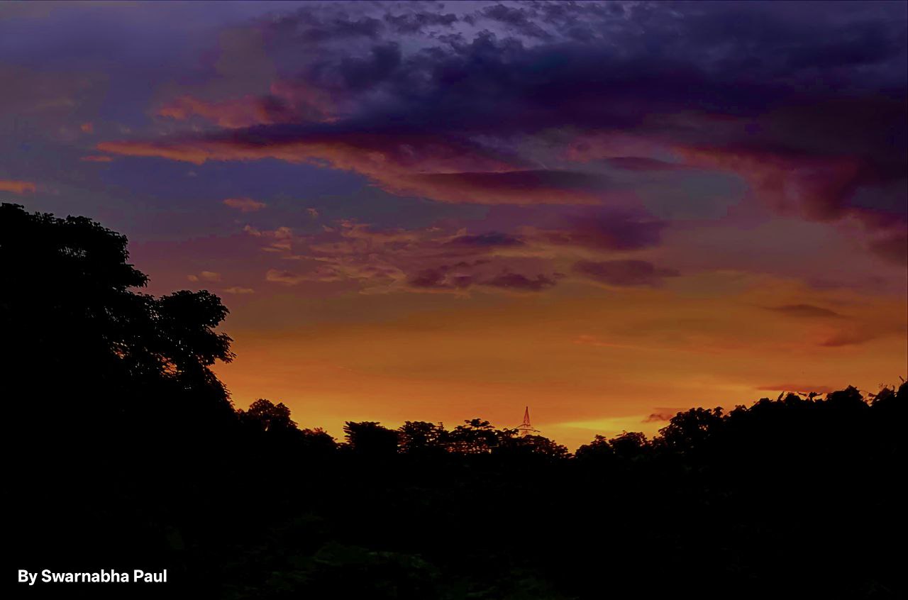 a sunset over trees