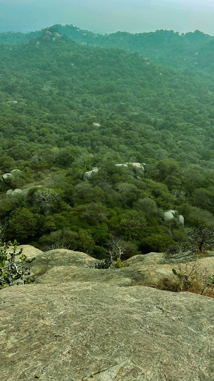 a landscape with trees and rocks