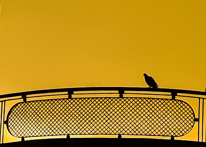a bird on a metal railing