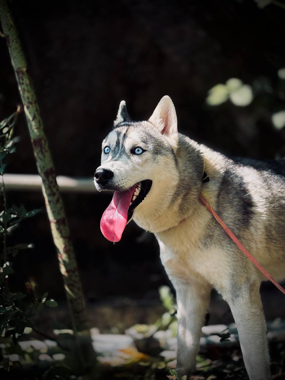 a dog with a red leash