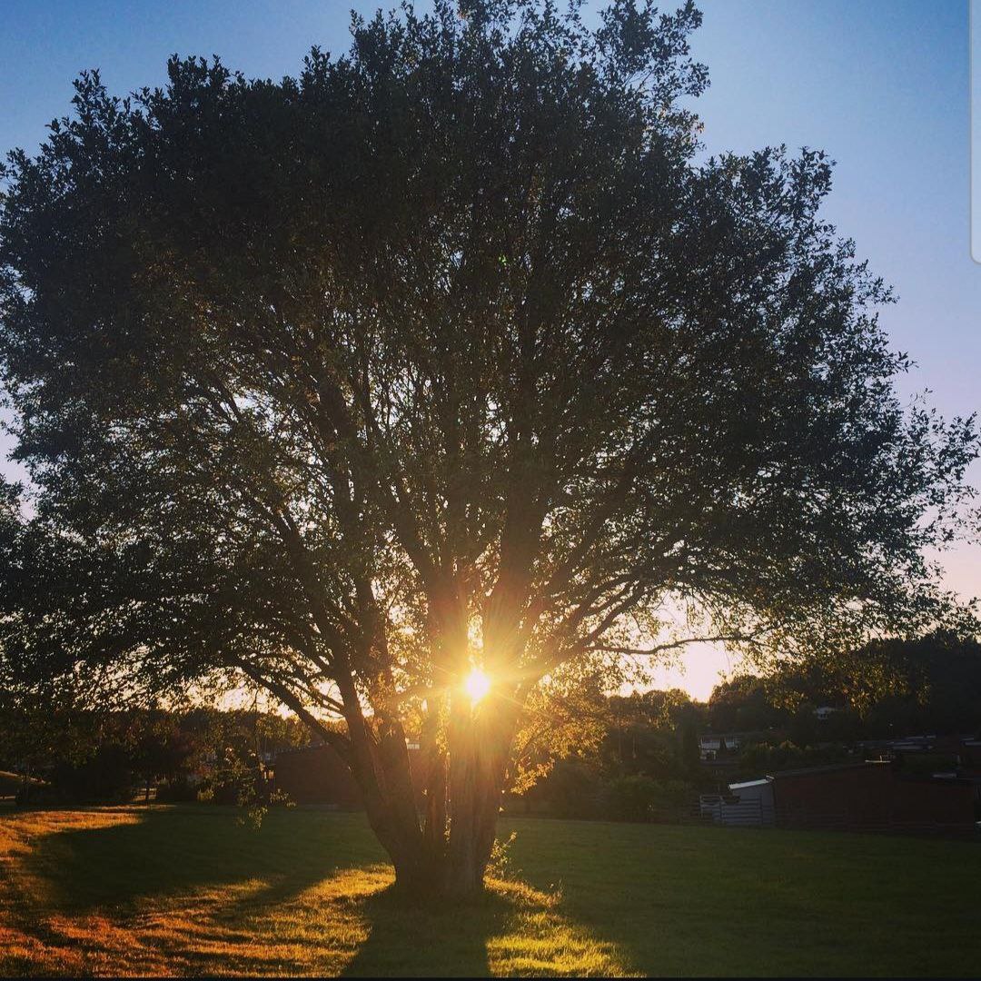 a tree with the sun behind it