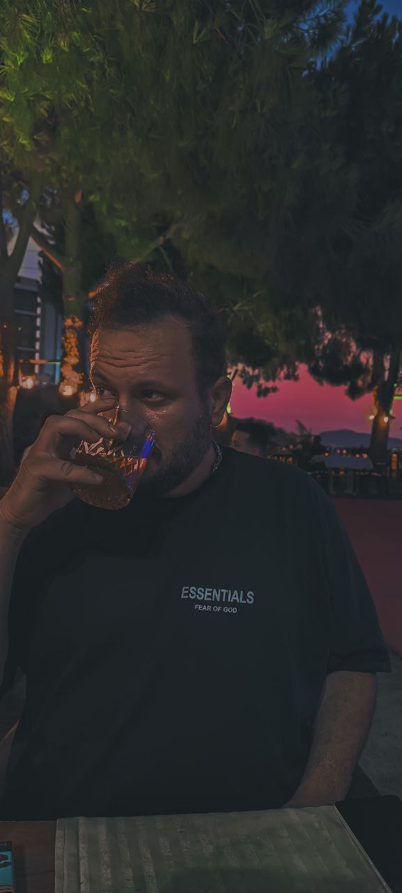 a man drinking from a glass