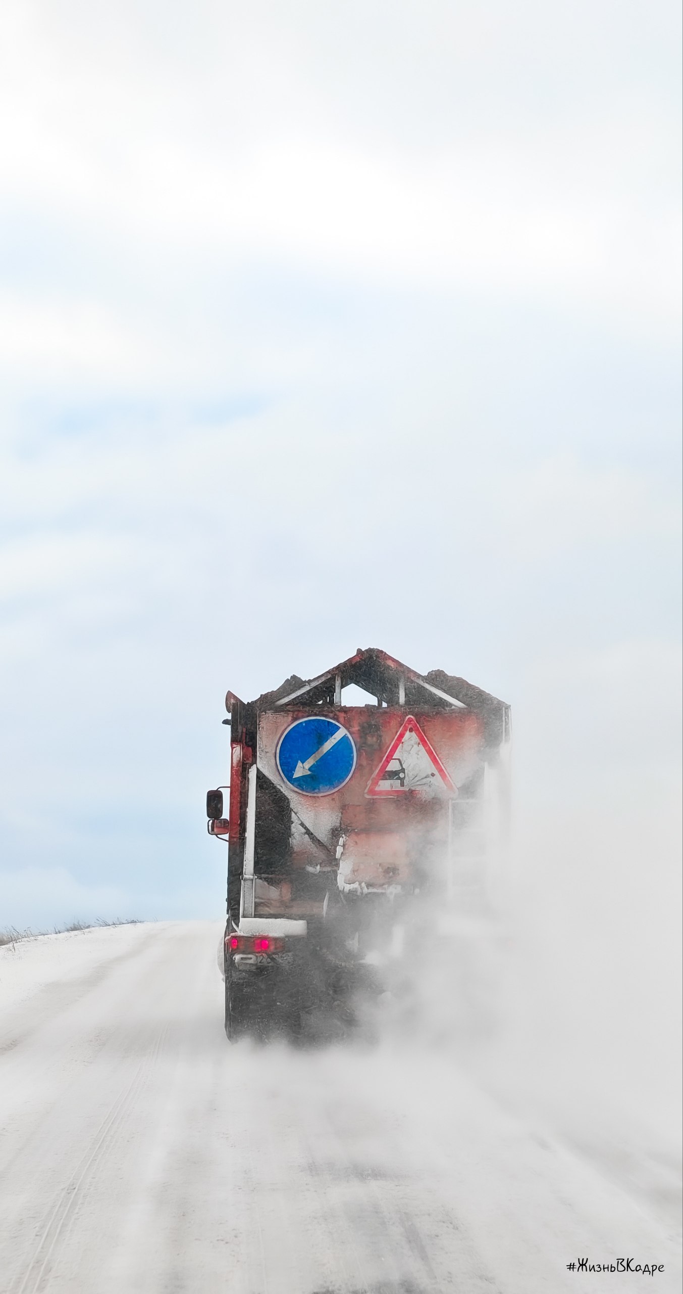 a tractor driving through the snow